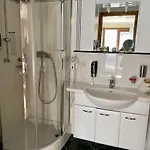 Haus Zu Den Zwei Eichen Lejlighed har værelser udstyret med tv og et fladskærms TV med satellitkanaler og tilbyder ideel logi i Perchtoldsdorf. Badeværelsesfaciliteter indeholder en brusekabine, separat toilet og en vask.